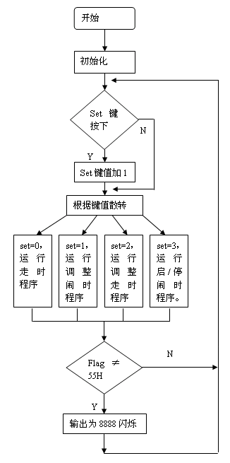 | 选择分类:当前分类——当前分类 相关联或者相类似的文章: 三十分钟一个小时学会单片机(9045) 什么是单片机?单片机有什么用? (8723) 如何用STC板将代码烧录进IC(8681) 怎样安装AT51编程板的USB转串口软件?(8206) 送给单片机爱好者——LED在线编码器(1814) 送给单片机爱好者——LED点阵在线编码器(1544) 单片机系统中的汉字显示(1492) 带语音报数功能的抢答器(1489) 用VB进行串口实时数据采集(1347) 用AT89C2051设计超声波测距仪(1171) 小小电子闹钟 生活学习良伴(1165) DS1820测温原理(1129) 几句代码实现控制摄像头(转)(1117) STC单片机选型指南(1111) 自制PIC单片机编程器(1105) USB转串口芯片CH340(1010) 快速学习单片机之黄金机会!(1010) 告戒购单片机开发实验板初学者(970) 新款实用旋转LED显示屏A(890) 使用市售 USB转RS232串口与PLC通信的测试报告 (881) 首页 前页 后页 尾页 本站推荐: | 小小电子闹钟 生活学习良伴 小小电子闹钟 生活学习良伴 ——— 一款电路极简的单片机电子钟设计详解 电路特点 这里介绍的电子钟,电路可称得上极简,它仅使用单片的20引脚单片机完成电子钟的全部功能,而笔者见到的其它设计方案均采用二片以上的多片IC实现。 电路见图1。 ![]() 一片20引脚的单片机AT89C2051为电子钟主体,其显示数据从P1口分时输出,P3.0~3.3则输出对应的位选通信号。由于LED数码管点亮时耗电较大,故使用了四只PNP型晶体管VT1~VT4进行放大。本来笔者还有一种更简的设计方案(见图2),可省去VT1~VT4及R1~R4八个元件,但这种设计由于单片机输出口的灌入电流有限(约20mA),数码管亮度较暗而不向读者介绍,除非你采用了高亮度的发光数码管。 ![]() P3.4、P3.5、3.7外接了三个轻触式按键,这里我们分别命名为:模式设定键set(P3.4)、时调整键hour(P3.5)、分调整键min(P3.7)。C1、R13组成上电复位电路。VT5及蜂鸣器Bz为闹时讯响电路。三端稳压器7805输出的5V电压供整个系统工作。此电子钟可与任何9~20V/100mA的交直流电源适配器配合工作,适应性强。 电子钟功能 1.走时:通过模式设定键set选择为走时,U1、U2显示小时,U3、U4显示分。U2的小数点为秒点,每秒闪烁一次。 2.走时调整:通过模式设定键set选择为走时调整,按下hour键对U1、U2的走时“时”显示进行调整(每0.2秒递加1)。按下min键对U3、U4的走时“分”显示进行调整(每0.2秒递加1)。 3.闹时调整:通过模式设定键set选择为闹时调整,按下hour键对U1、U2的闹时“时”显示进行调整(每0.2秒递加1)。按下min键对U3、U4的闹时“分”显示进行调整(每0.2秒递加1)。 4.闹时启/停设定:通过模式设定键set选择为闹时启/停设定,按下min键U3的小数点点亮,闹时功能启动;按下hour键U3的小数点熄灭,闹时功能关停。 由于电路设计得极其简单,因此丰富的功能只能由软件完成,这里软件设计成为了关键。下面介绍软件设计要点。 图3为主程序状态流程。 ![]() 图3 运行时建立的主要状态标志如下: flag—掉电标志。掉电后,flag内为一随机数;重新设定时间后flag内写入标志数55H。 set—工作模式设定标志。 hour—走时“时”单元。 min—走时“分”单元。 sec—走时“秒”单元。 deda—走时5mS计数单元 t_hour—闹时“时”单元。 t_min—闹时“分”单元。 d_05s—0.5秒位标志。每秒钟的前0.5秒置1,后0.5秒置0,以使秒点闪烁。 o_f—闹时启/停位标志。闹时启动置1,闹时关停置0。 另外将定时器T0设定为5mS的定时中断。这里晶振频率为12MHz,因此5mS的初值为-5000,但实际上程序还要作其它运算,使得时间偏长,经调整为-4800后试验刚好。计时单元deda每次中断均加1。走时函数判断deda>=200时即令秒单元sec加1。同理秒单元sec满60后令分单元min加1。分单元min满60后令时单元hour加1。时单元hour满24后清0。 上电后,首先进行初始化,对各状态标志、输入输出口及定时器T0进行初始化工作,以适应后面程序的要求。 随后程序判断有无set键按下,如按下,则set键值从0起加1。set键值只能从0加到3,然后又回到0。 接下来,根据键值进行散转。若set=0,运行走时程序;若set=1,进入调整闹时时间程序;若set=2,进入调整走时时间程序;若set=3,显示已调好的闹时时间,同时进入启/停闹时程序。 散转完后,进行判断掉电标志flag是否等于55H。若不等,说明刚开机上电或运行过程中掉过电,这时四个数码管以1Hz的频率闪烁四个8字,提示时间不准;若相等,说明未掉电,RAM区内容未变化,时间准确。 再下来程序又转回到初始化之后进行循环运行。 由于使用了四只数码管密集排列,因此只能采用双面印刷板设计,图4、5分别为正面(元件面)、反面的印板图。尺寸3000milx4000mil(7.62cmx10.16cm)。图6为计算机输出的三维仿真印制板。 ![]() 图4 ![]() 图5 ![]() 图6 元件选用 为了走时准确,晶振X最好选用温漂小的。四个数码管U1~U4可选用发绿光的,这样光泽较柔和。蜂鸣器Bz要购买绕线型的电动式蜂鸣器(市场上有一种加电压即工作的蜂鸣器这里不适用),因驱动信号为脉冲信号。其它元件一般无特殊要求。 使用方法 上电后,四个LED数码管闪烁四个8字。 按一下set键,闪烁现象消失(此时set=1),U1的小数点亮,说明此刻可以调整闹时时间。按下hour键,U1、U2作加法;按下min键,U3、U4作加法。这些调整好的数据被同时送入RAM区的闹时记忆“时”单元t_hour和闹时记忆“分”单元t_min。 再按一下set键,set=2,U2的小数点亮,此刻可以调整走时时间。按下hour键,U1、U2作加法;按下min键,U3、U4作