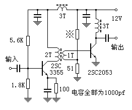 与上图的电路结构完全相同,只是改了几个元件的数值,晶体管也做了调整。由于输出功率较小,用3355做输出也不用考虑输出管的安全问题,可以长期稳定地工作。